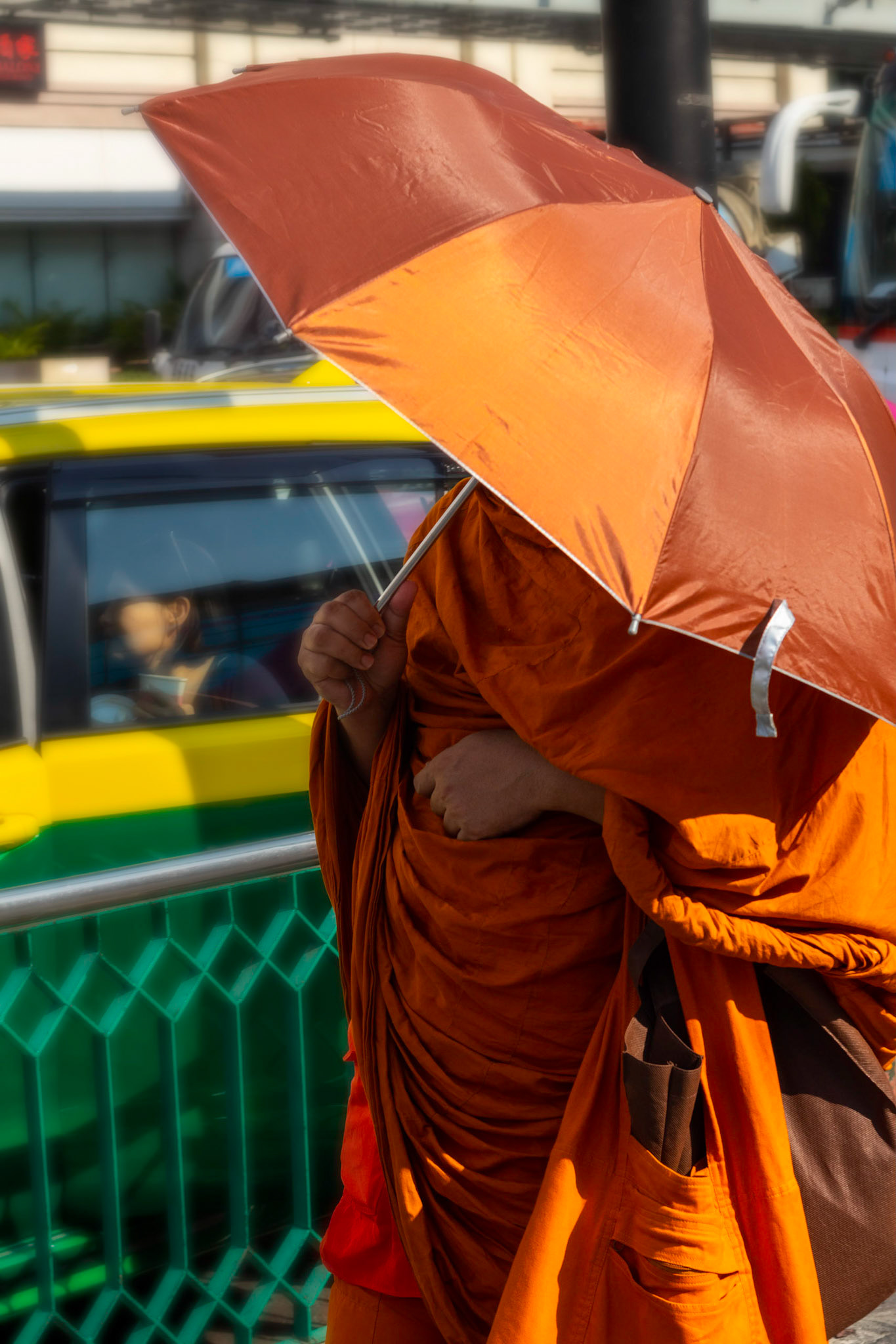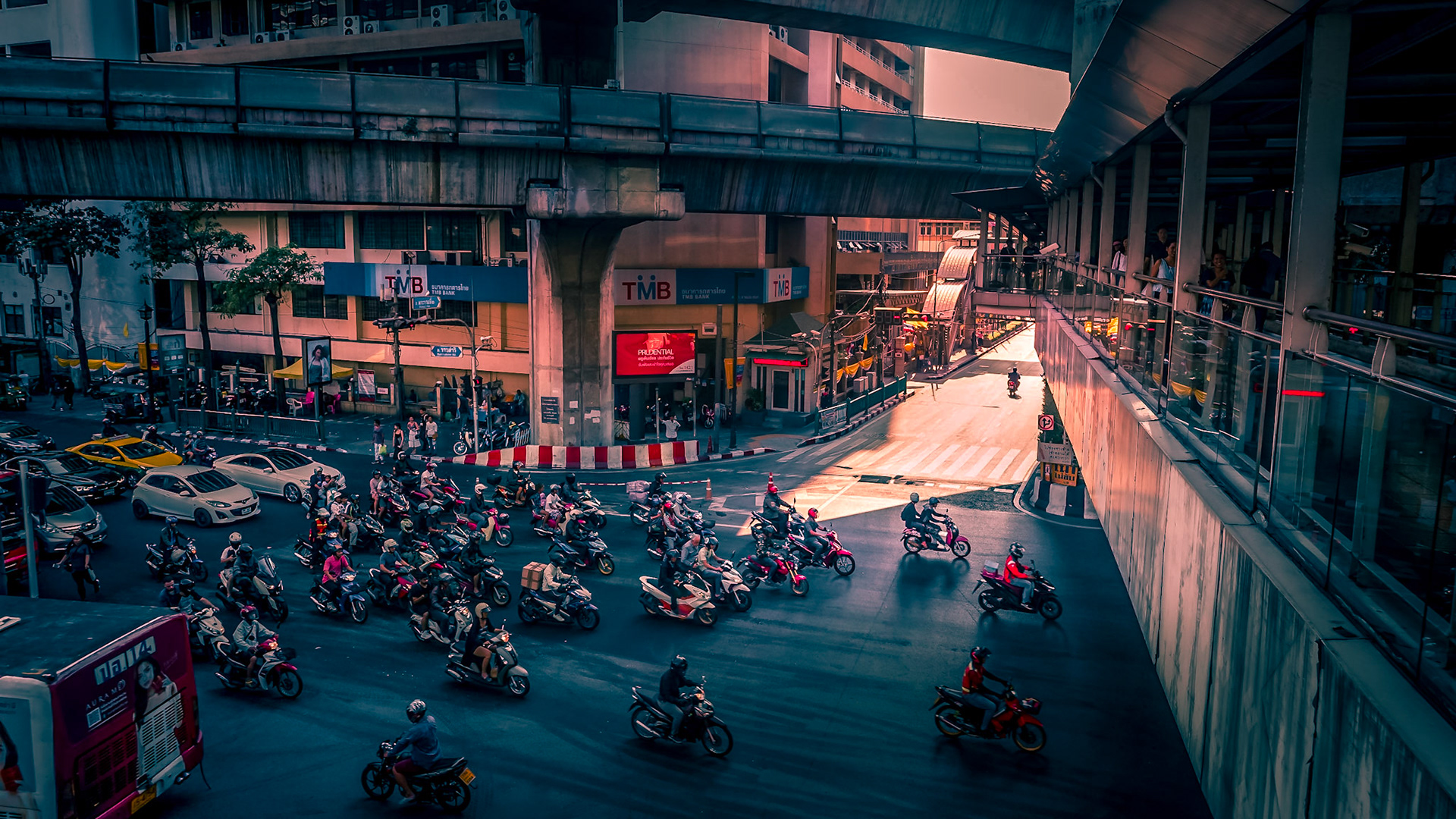 A Traffic Cop makes his way to get in position to direct the traffic in Bangkok